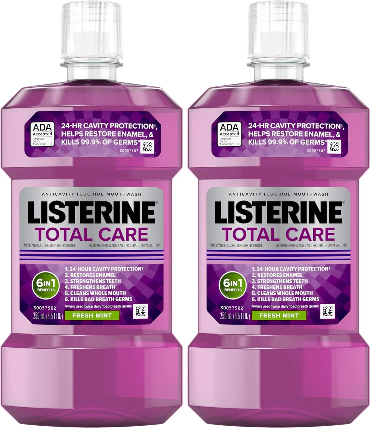 FLUORIDE ANTICAVITY MOUTHWASH: 250-milliliters of Listerine Fluoride Anticavity Mouthwash in fresh mint flavor to improve oral health by helping to prevent cavities, strengthening teeth, and leaving a refreshing, clean feeling you can taste