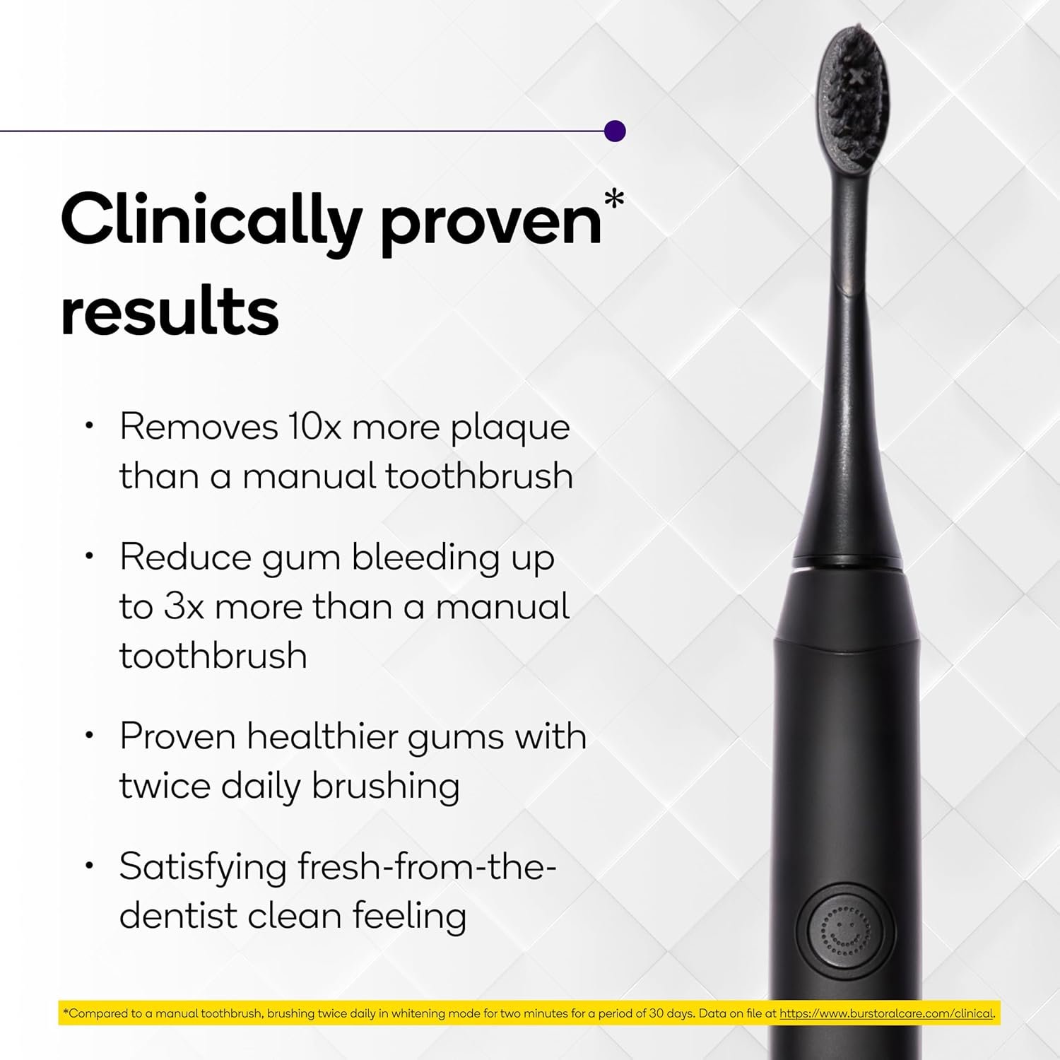 𝗥𝗘𝗗𝗨𝗖𝗘 𝗚𝗨𝗠 𝗕𝗟𝗘𝗘𝗗𝗜𝗡𝗚 𝗨𝗣 𝗧𝗢 𝟯𝗫*: Get healthier gums in 2 weeks compared to a manual toothbrush.